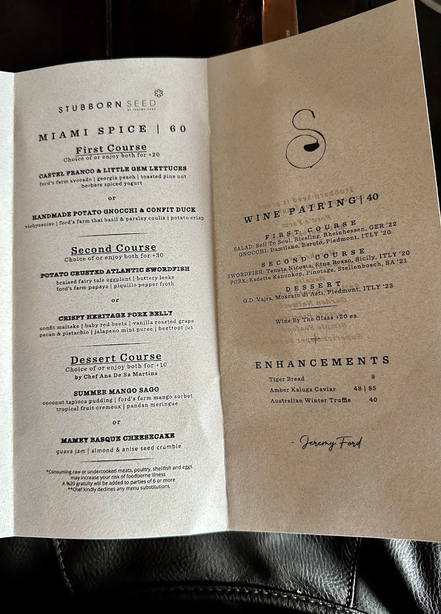 Welcome to Stubborn Seed in Miami Beach, a Michelin-starred gem that promises a culinary adventure like no other. Located at 101 Washington Ave, this restaurant invites you into a world where every dish is a work of art. Guests rave about the impeccable service, highlighting the warmth and attentiveness of staff like Ida and Lesia, who ensure every dining experience feels special.
